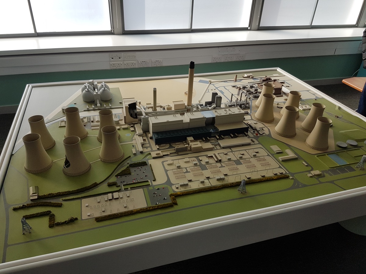 model with the central building housing six boiler, steam turbine